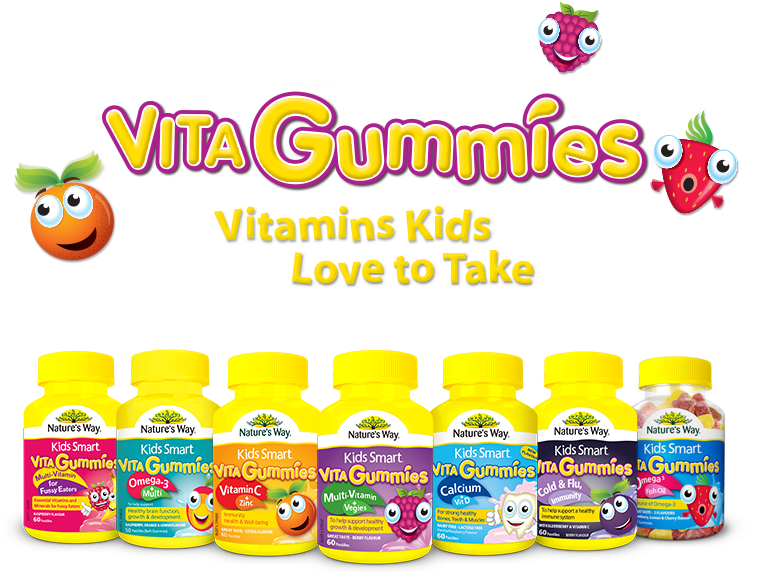 Vitamin Nature's Way Multivitamin + Vegies với vị trái dâu tự nhiên, mềm rất thích hợp cho bé từ 2 tuổi trở lên. Kids smart vita gummies Multivitamin + vegies với 9 loại vitamin thiết yêu thêm cà rốt, cà chua, rau bina, củ cải đường và bột Atiso. Bằng cách kết hợp với chế độ ăn uống lành mạnh và cân bằng, bạn có thể giúp bé có đầy đủ các dưỡng chất, vitamin hỗ trợ bé phát triển khỏe mạnh.